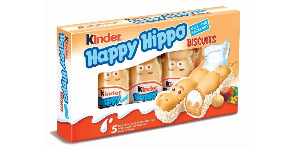 - Kinder Happy Hippo - вафельный батончик; в категории представлены разные версии и разное количество в упаковке.
